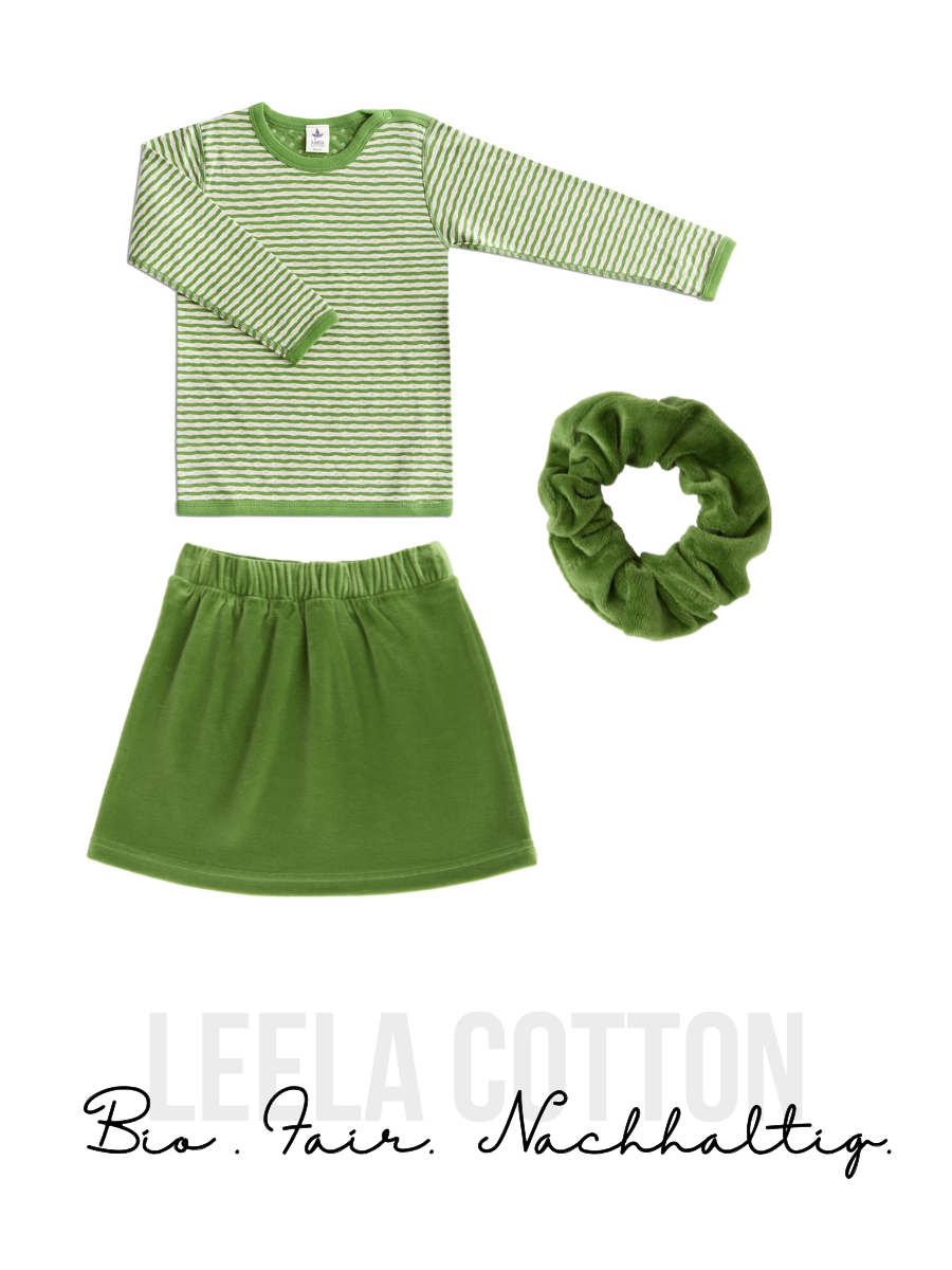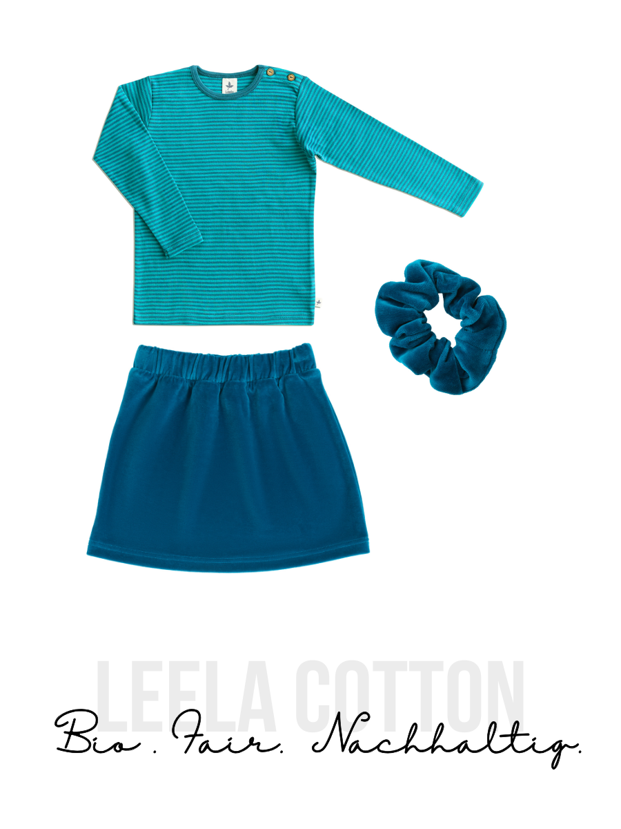 Bequem, weich und perfekt für Herbst und Winter: Dieses Set aus 100% Bio-Baumwolle besteht aus einem Nicky-Rock mit passendem Shirt – dazu ein passender Scrunchie für kleine Mädchen.