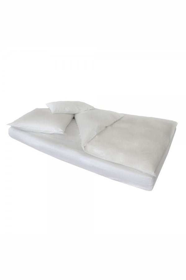 - Spannbettbezug aus gewebter Bio-Baumwolle mit einer leinenartigen Struktur.