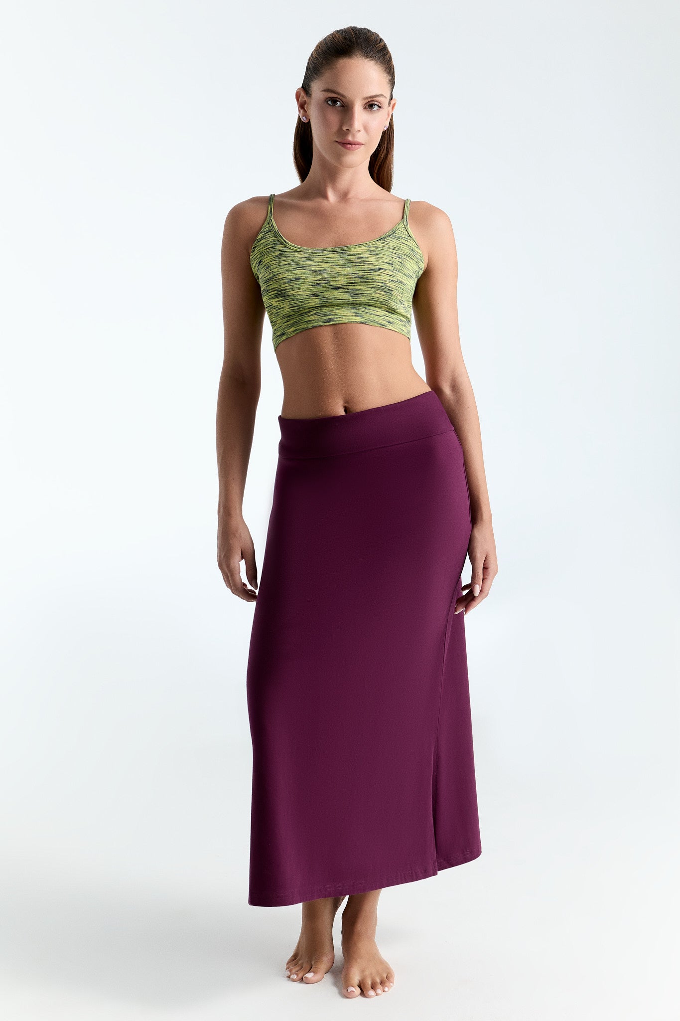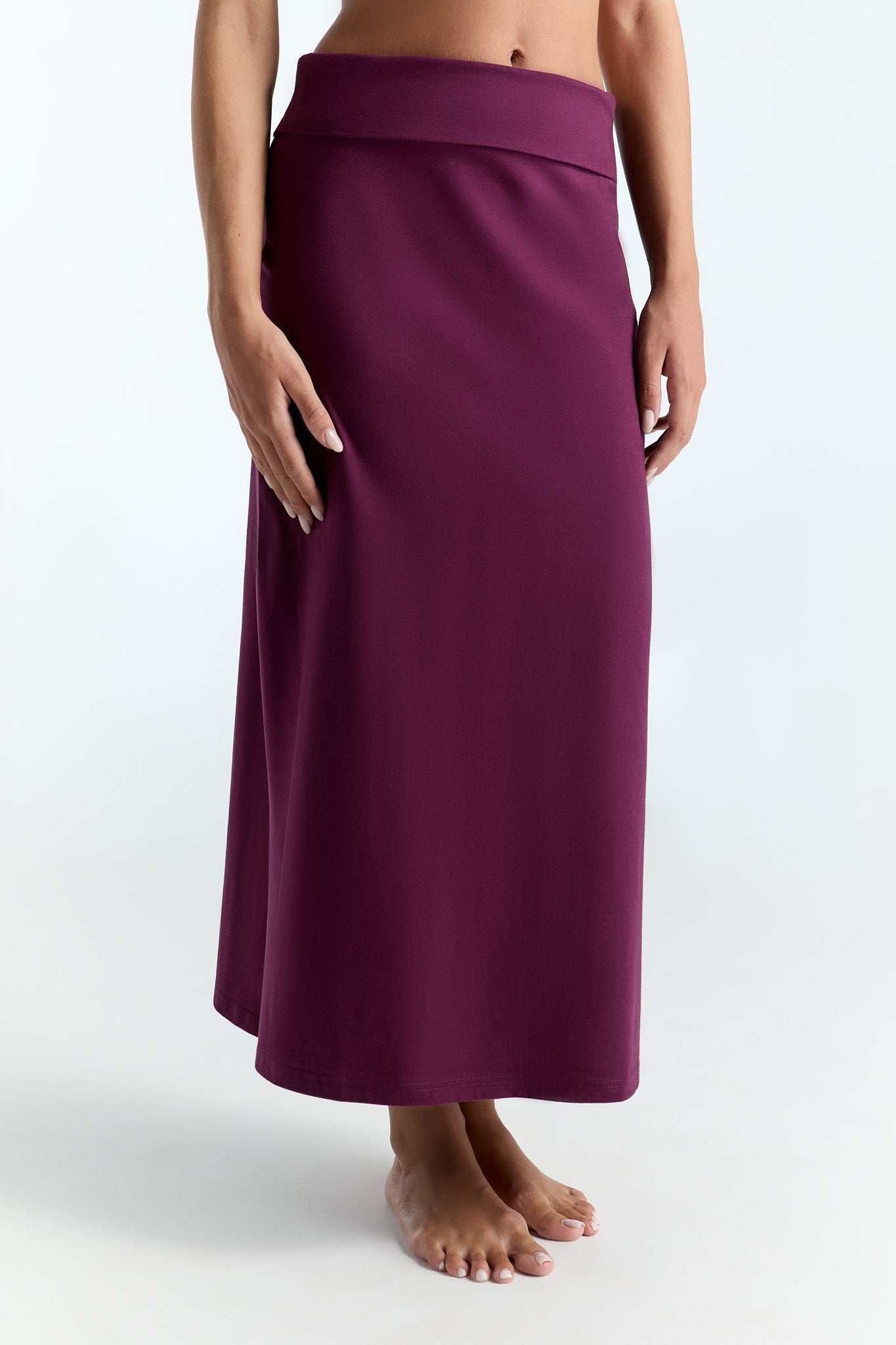 Knöchellanger Rock mit zwei seitlichen Schlitzen. Bequemer Umschlagbund. Hergestellt aus weichem Biobaumwolljersey: 95% Bio-Baumwolle (kbA), 5% Elasthan. GOTS zertifiziert. Unsere Biobaumwolle wird nachhaltig und umweltfreundlich produziert, was diesen Rock zu einer verantwortungsvollen Wahl macht.