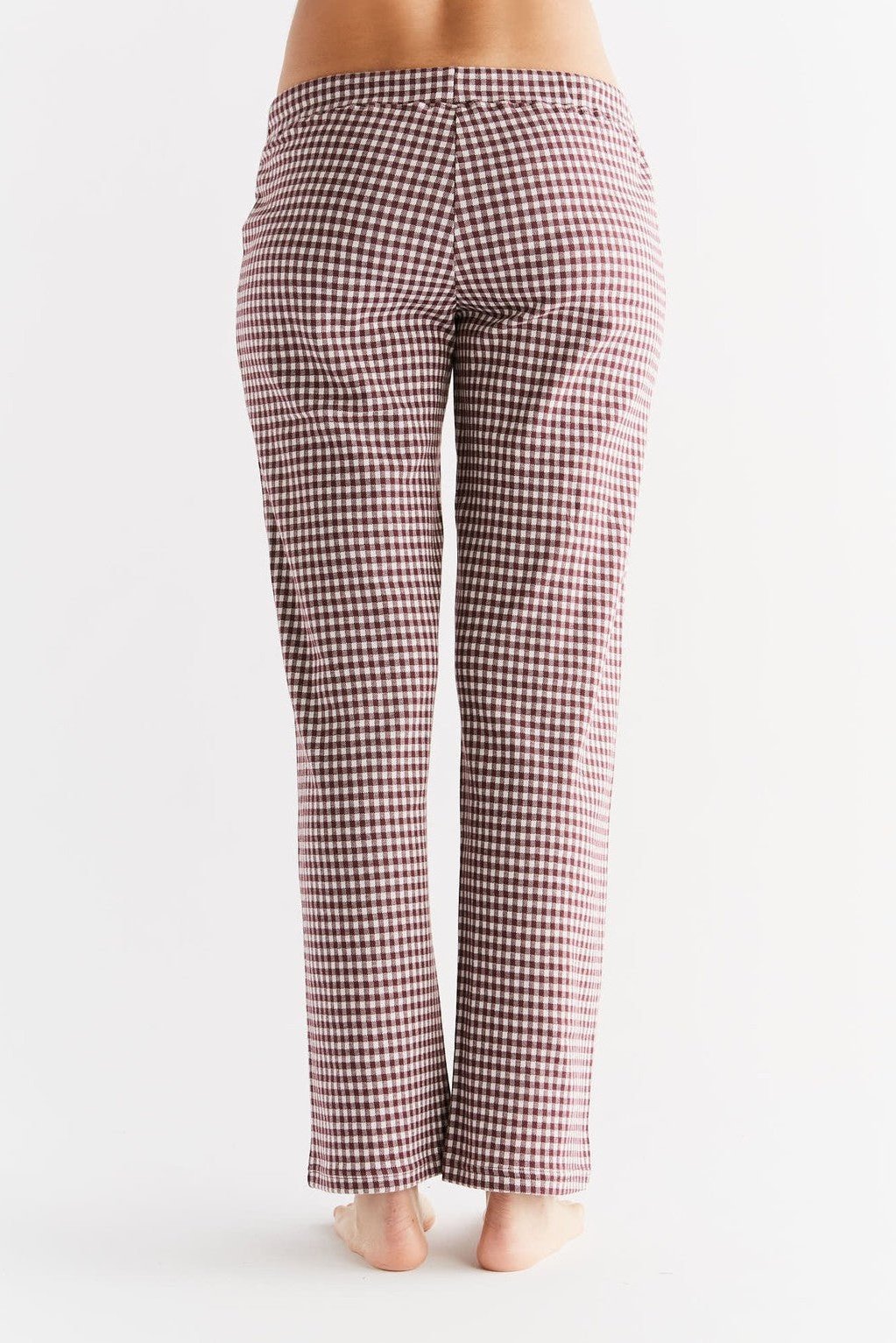 1455-01 | Damen Homewear-Hose kariert - Aubergine-Natur