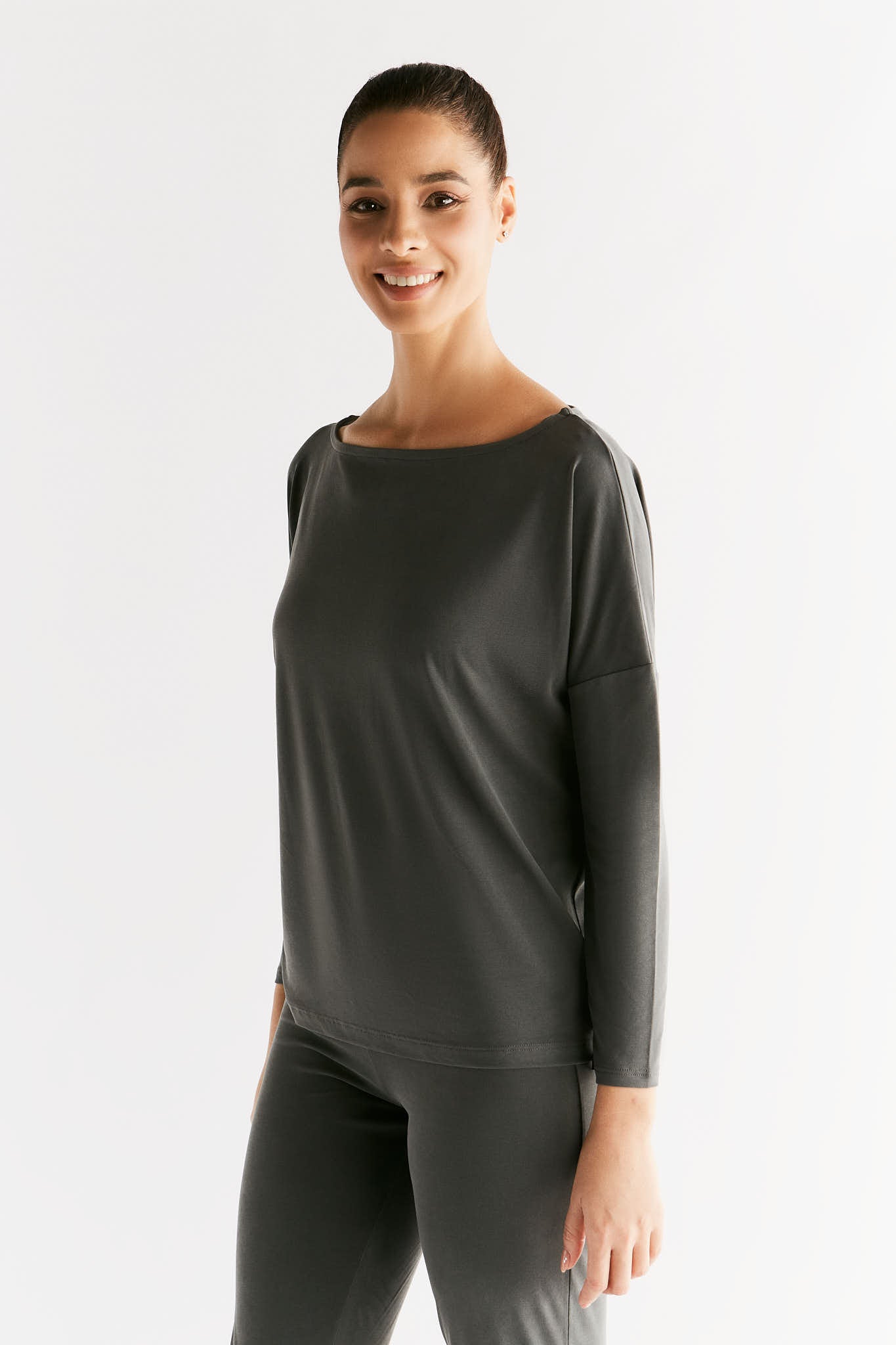 T1111-24 | TENCEL™ Active Damen Yoga Langarmshirt - Pirate Black