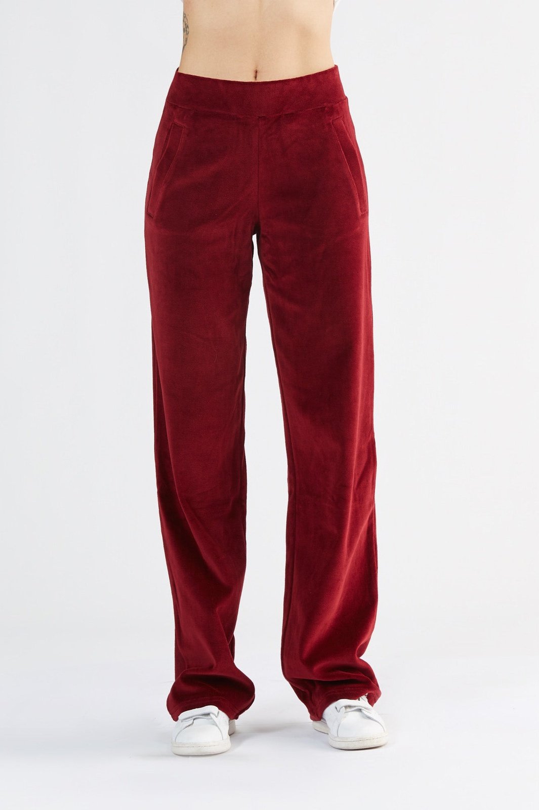 Kuschelige Hose aus Nicky, 100 % Bio-Baumwolle (kbA), sehr angenehm auf der Haut. In einer tollen bordeauxfarbenen Samtoptik, kombiniert mit seitlichen Eingriffstasche. Der gerade, elegangte Schnitt verleiht dir ein optimales Traggefühl.