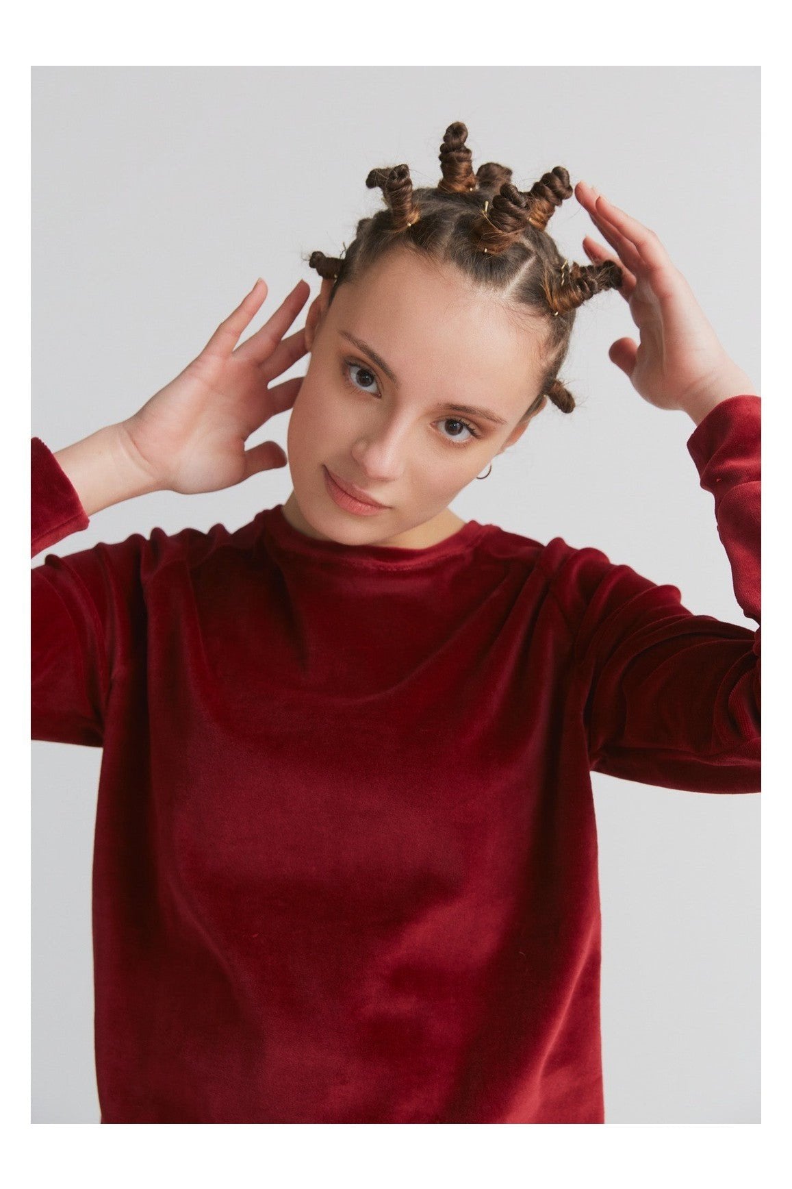 Kuscheliges Sweatshirt aus Nicky, 100 % Bio-Baumwolle (kbA), besonders weich und angenehm zu tragen. In einer tollen bordeaux-farbenen Samtoptik. Die lockere Passform in Kombination mit den Raglanärmeln verleihen dem Sweatshirt einen besonderen Tragekomfort.