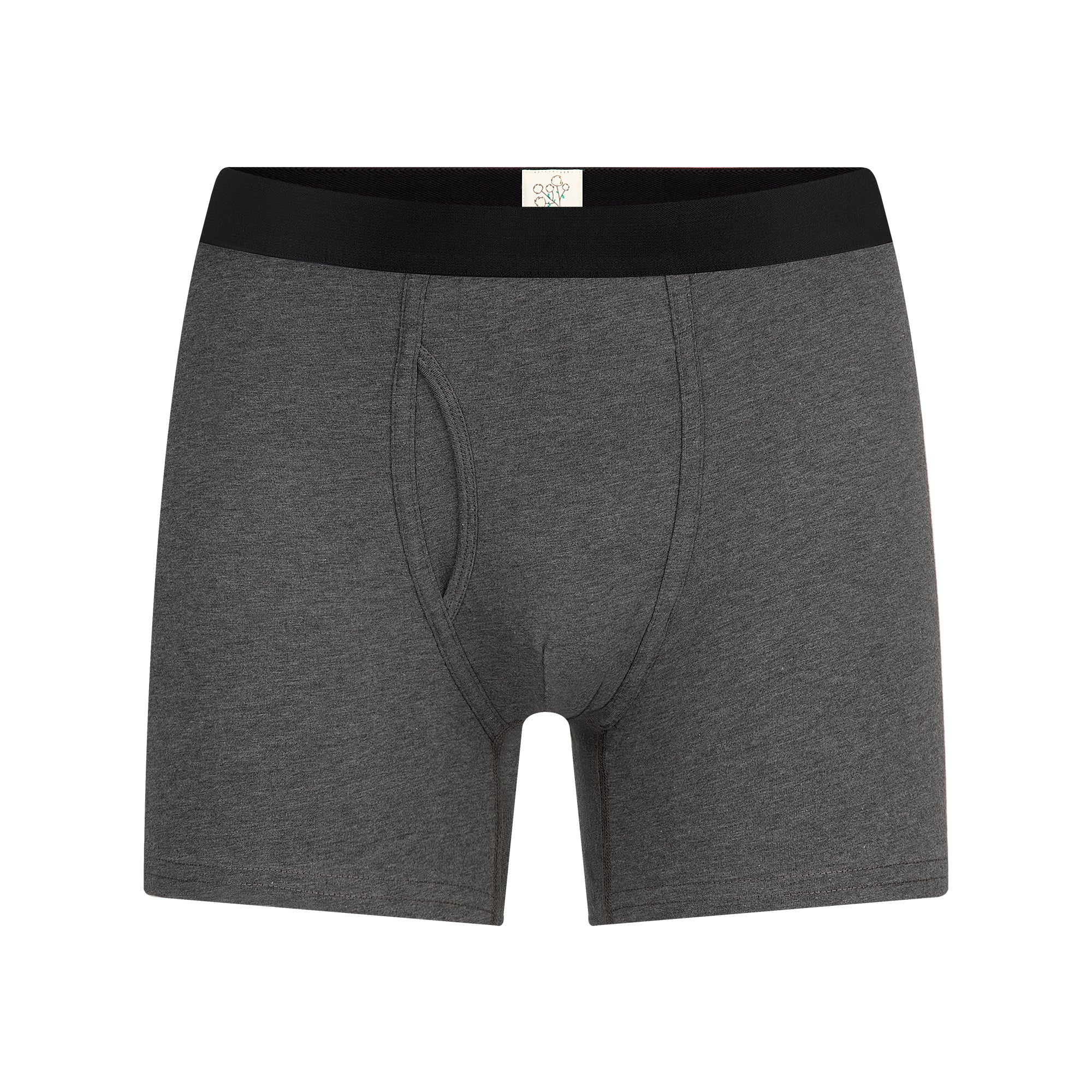 Herren Boxershorts in Anthrazit-Melange. Kombiniert mit einem elastischen, schwarzen Taillenbund in einem sportlich, trendigen Design mit Eingriff aus 95% Bio-Baumwolljersey (kbA) und 5% Elasthan. Die enge Passform aus weichem Baumwolljersey, hat eine hohe Qualität, ist angenehm auf der Haut und verleiht dir ein optimales Traggefühl.