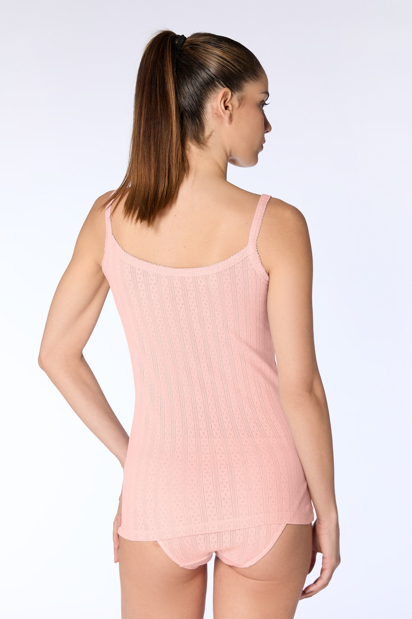 Dieses Damen-Top überzeugt mit einem feinen Jacquardstoff und liebevollen Details. Träger und Ausschnitt sind zart umhäkelt und verleihen dem Top eine feminine, elegante Note.