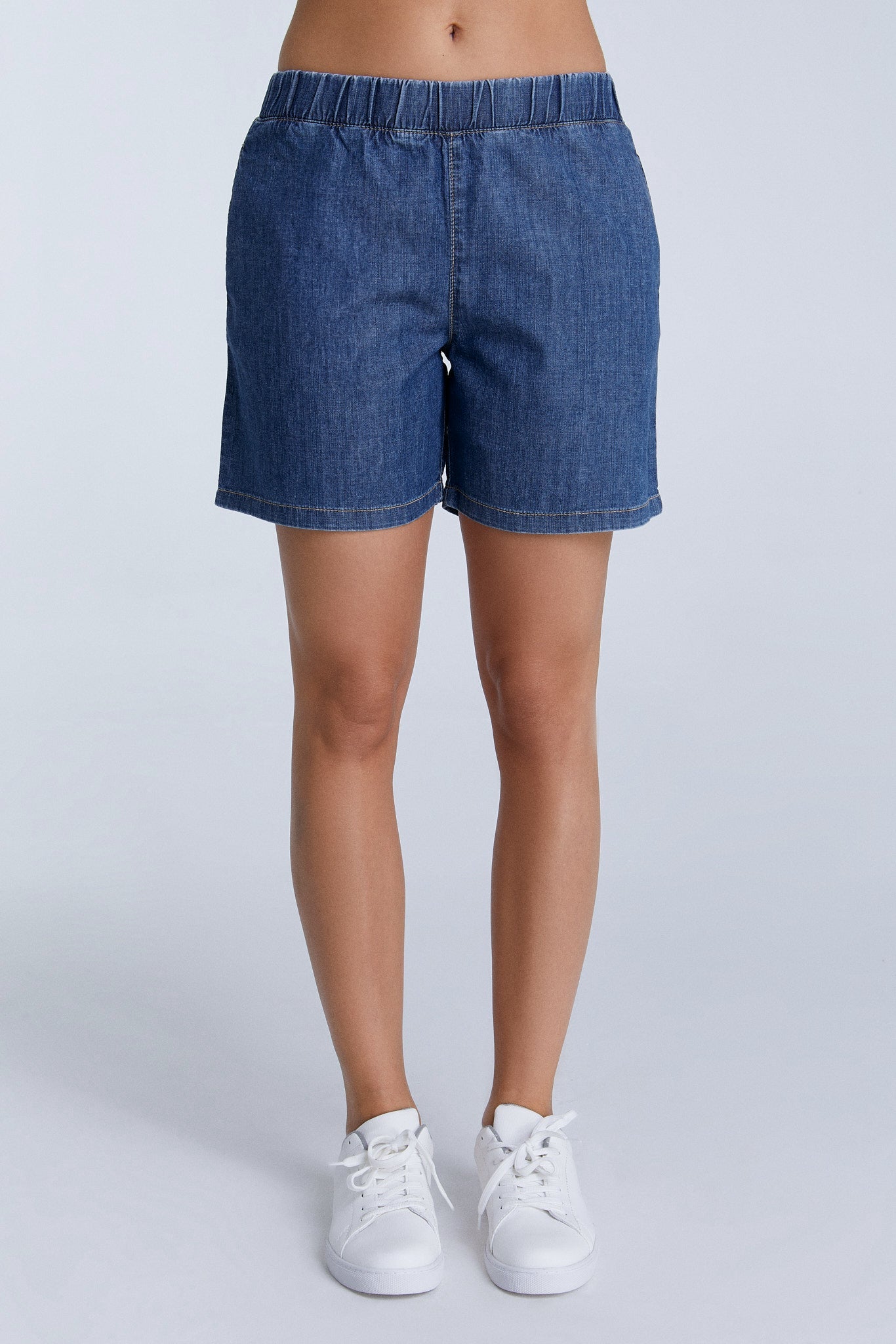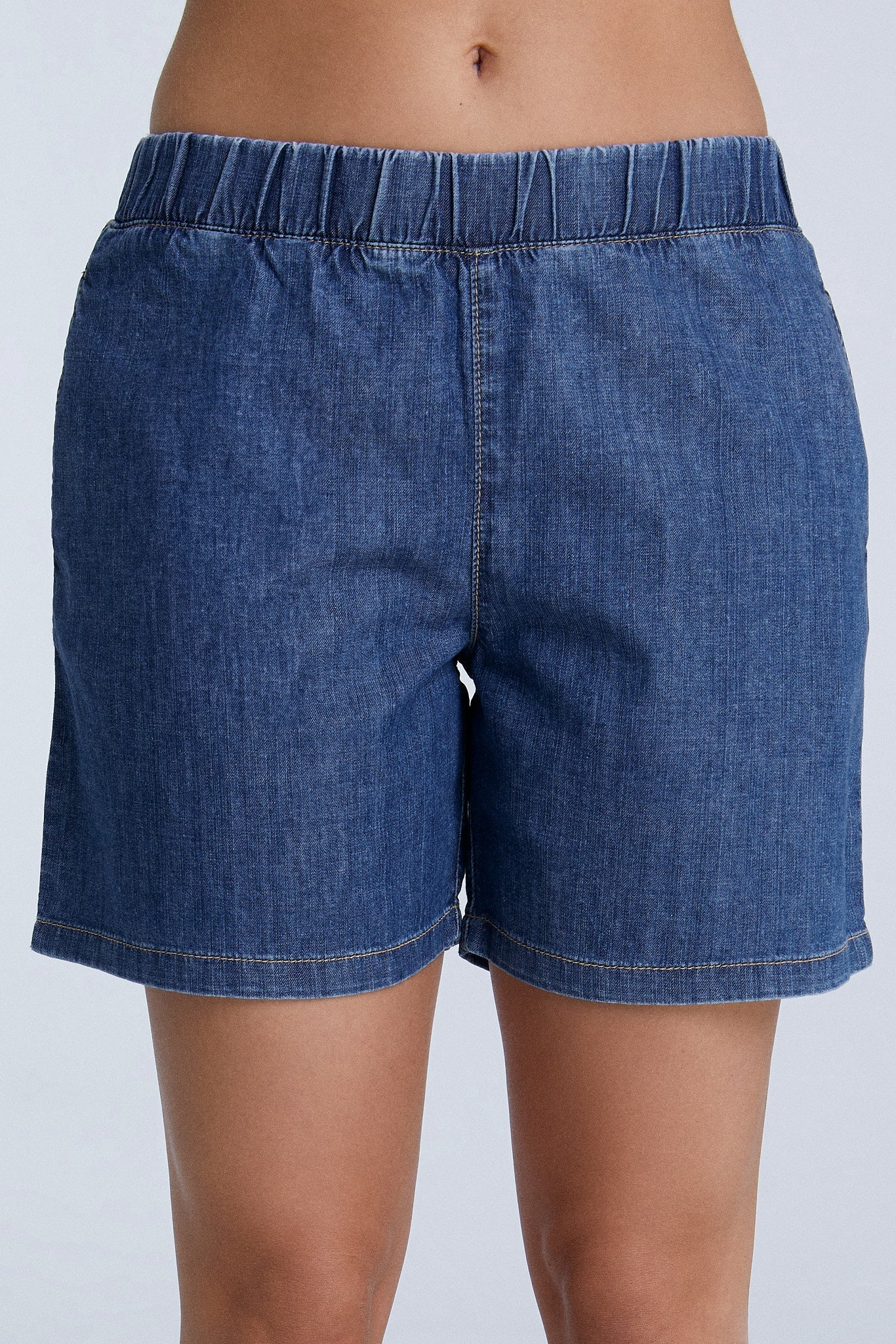 Weiche Jeansshorts mit elastischem Gummibund und lockerer Passform. Hergestellt aus 100% Bio-Baumwolle (6,25 oz), sind diese Shorts leicht und bieten optimalen Tragekomfort. Ohne unnötige Accessoires oder Verzierungen, bleiben sie minimalistisch im Design und umweltfreundlich – ideal für einen entspannten, nachhaltigen Look.