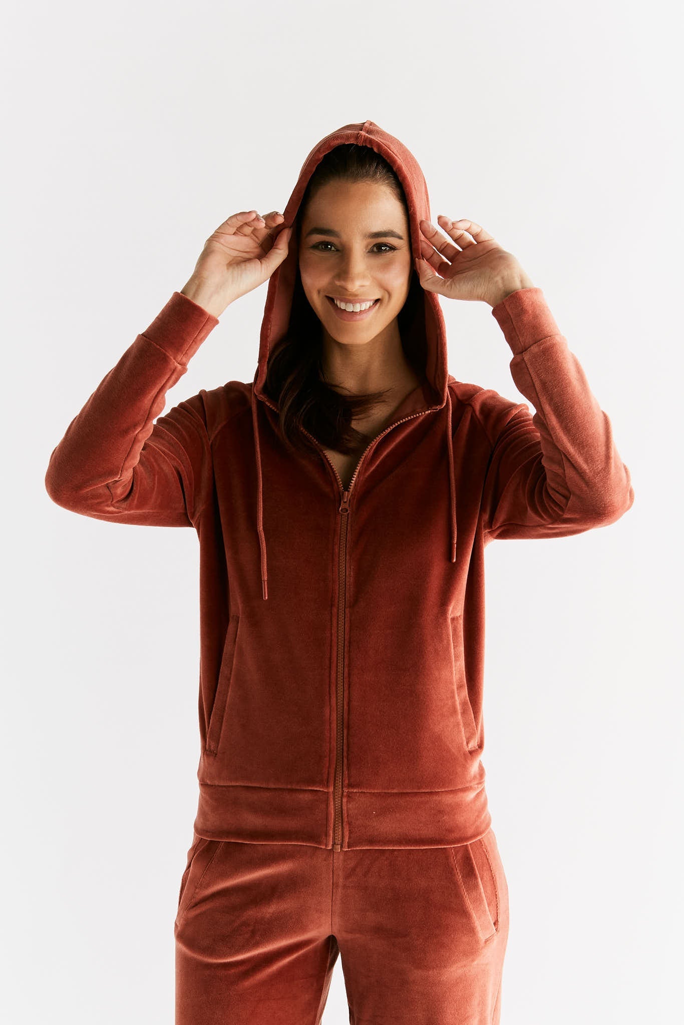 1271-043 | Women velour Hooded Jacket - Tabasco