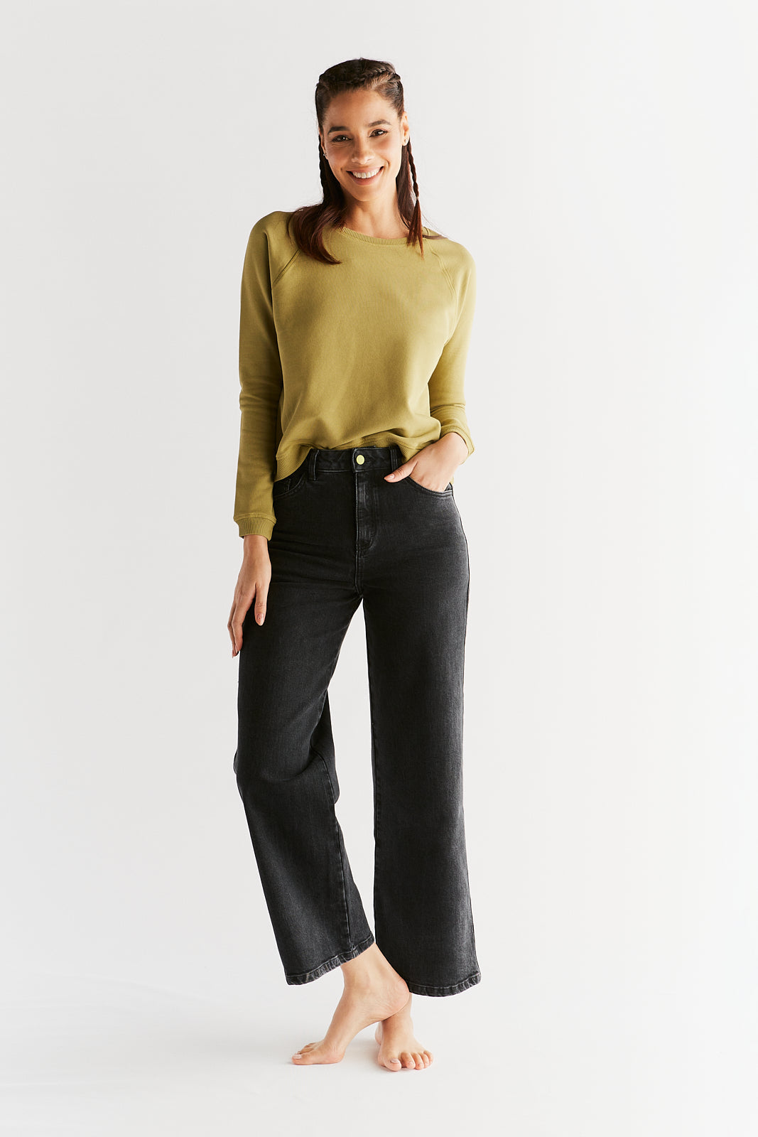 WE1010-104 | Women Wide Leg Jeans - Coal Black