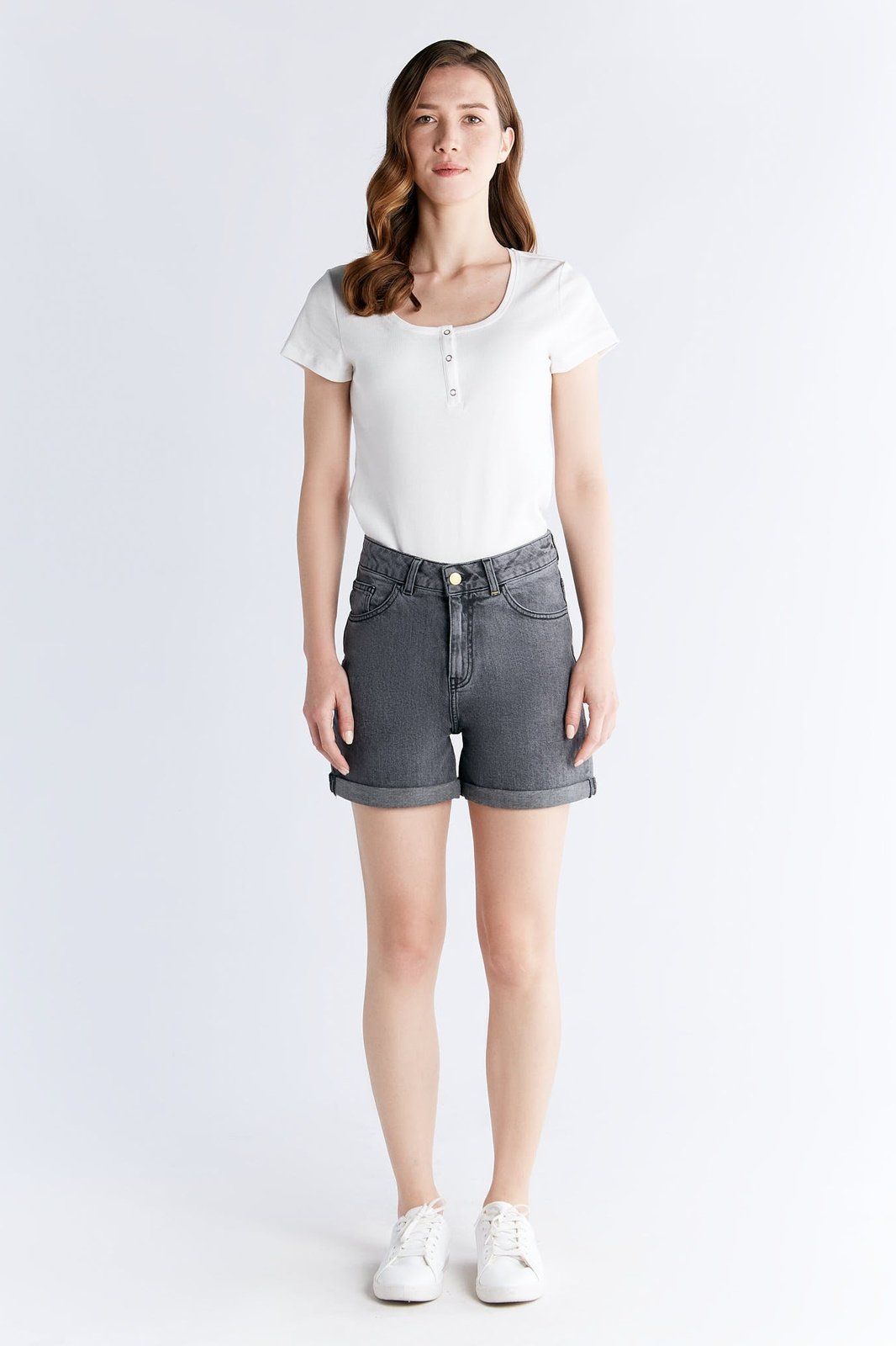 WN3010-145 Women Mom Shorts - Carbon Gray