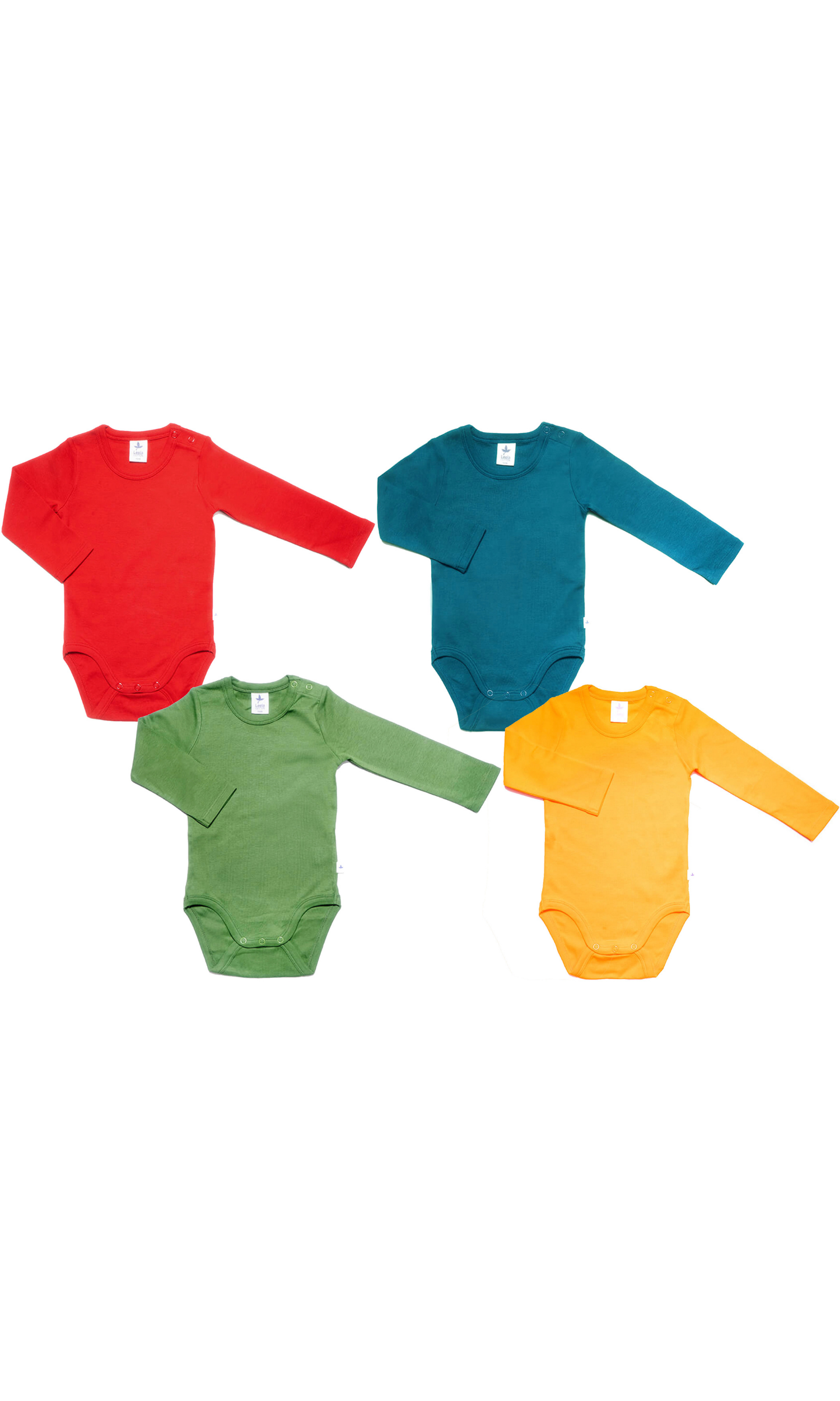 4er Langarmbody Set - Ziegelrot/Donaublau/Waldgrun/Sonnengelb