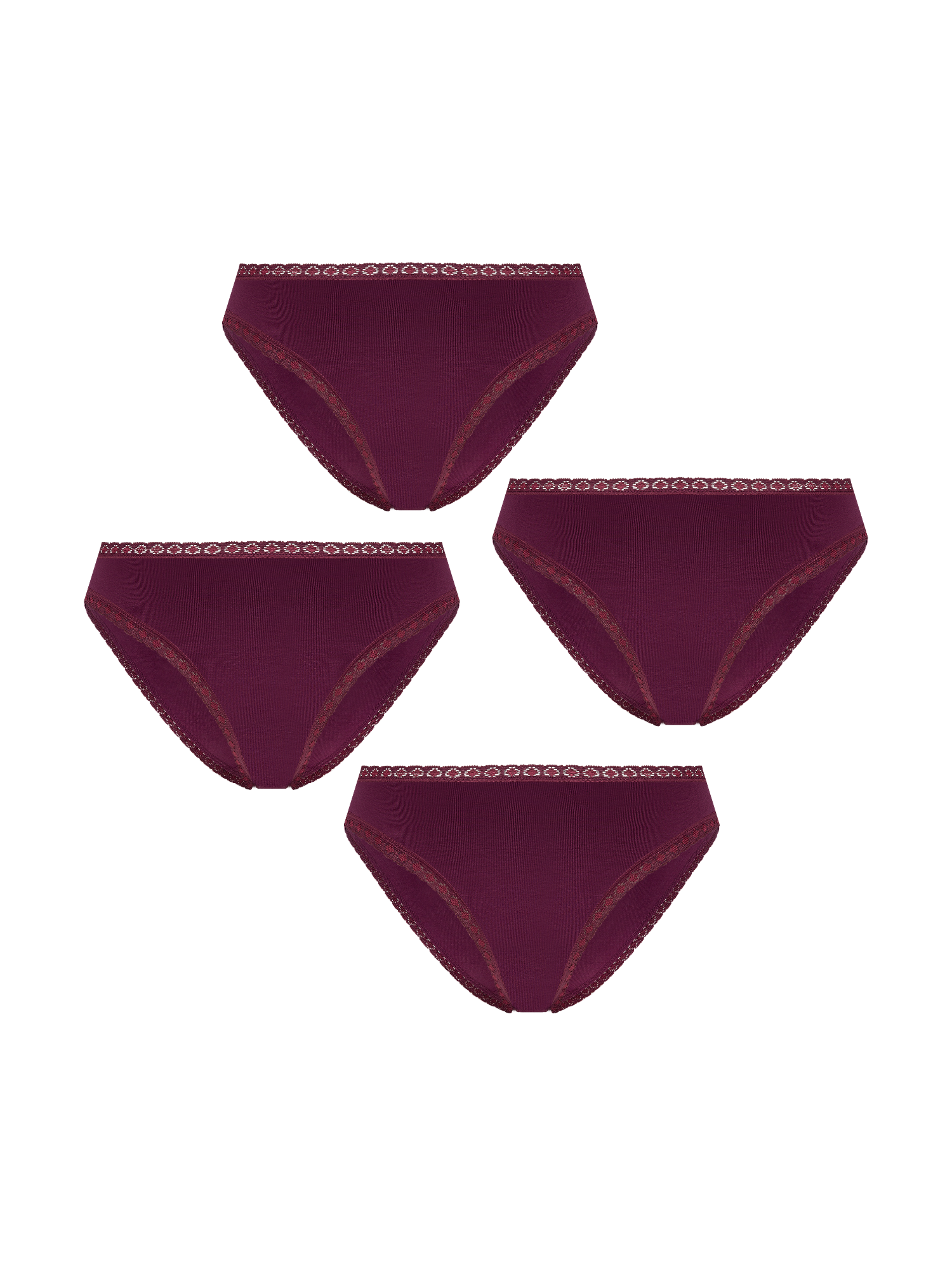 Briefs in eggplant color combined with soft elastic lace in eggplant color at waistband and leg openings