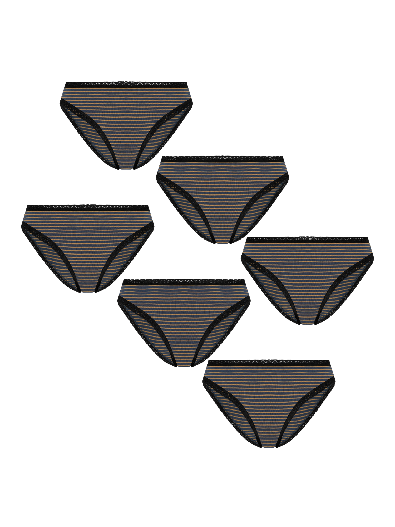 Striped briefs combined with soft elastic lace at waistband and leg openings