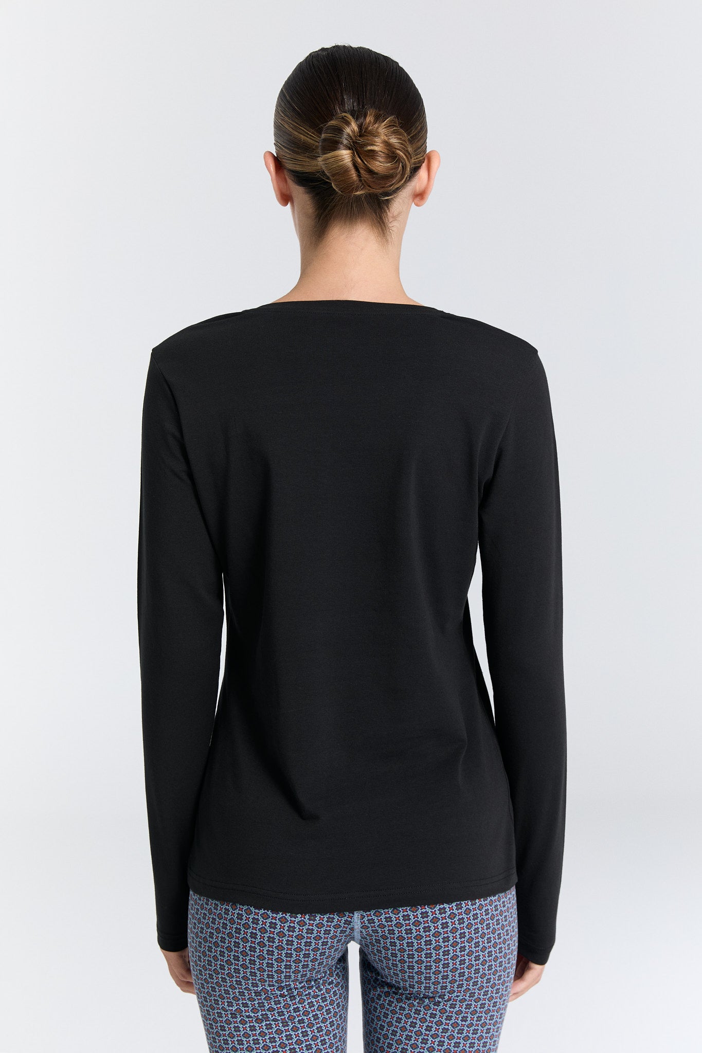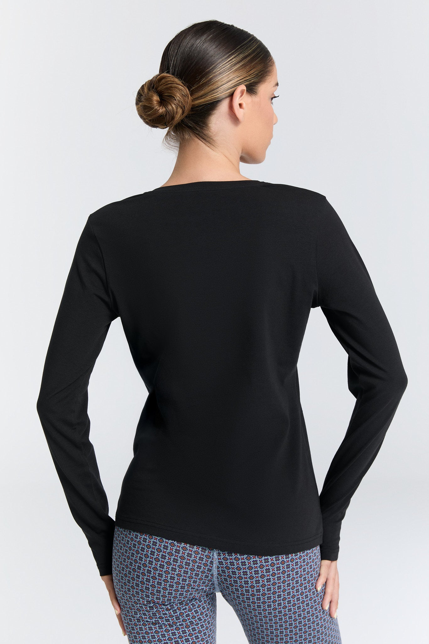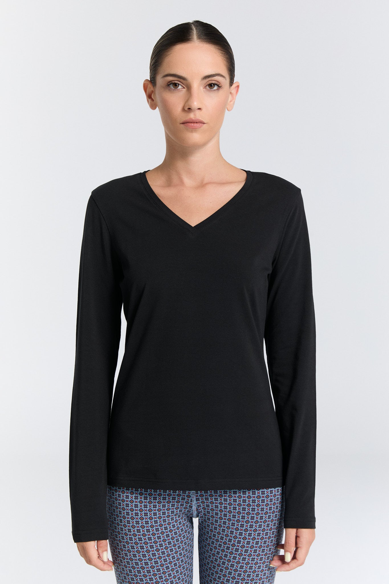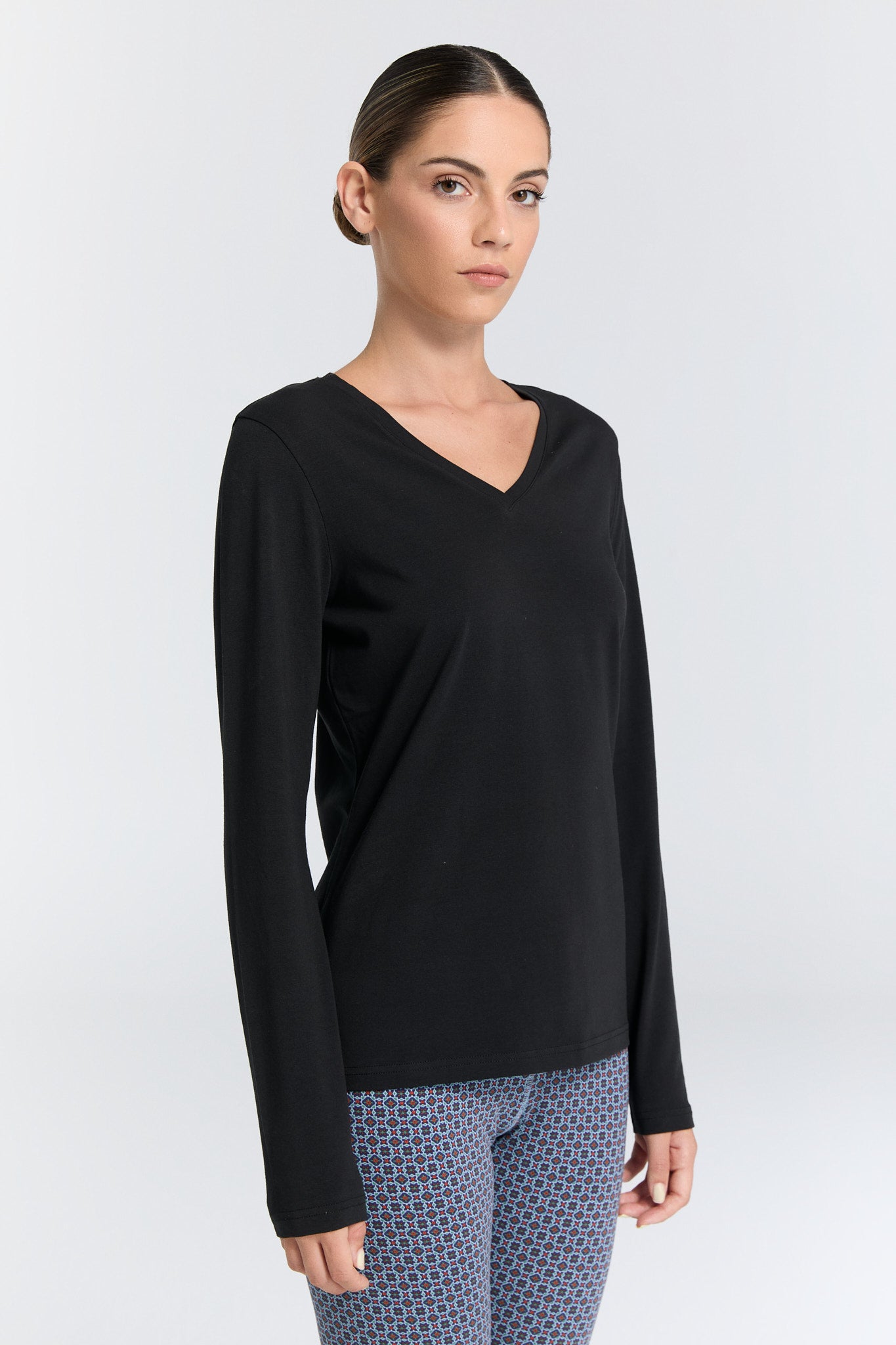 4413-021 | Damen V-Neck Langarmshirt - Schwarz