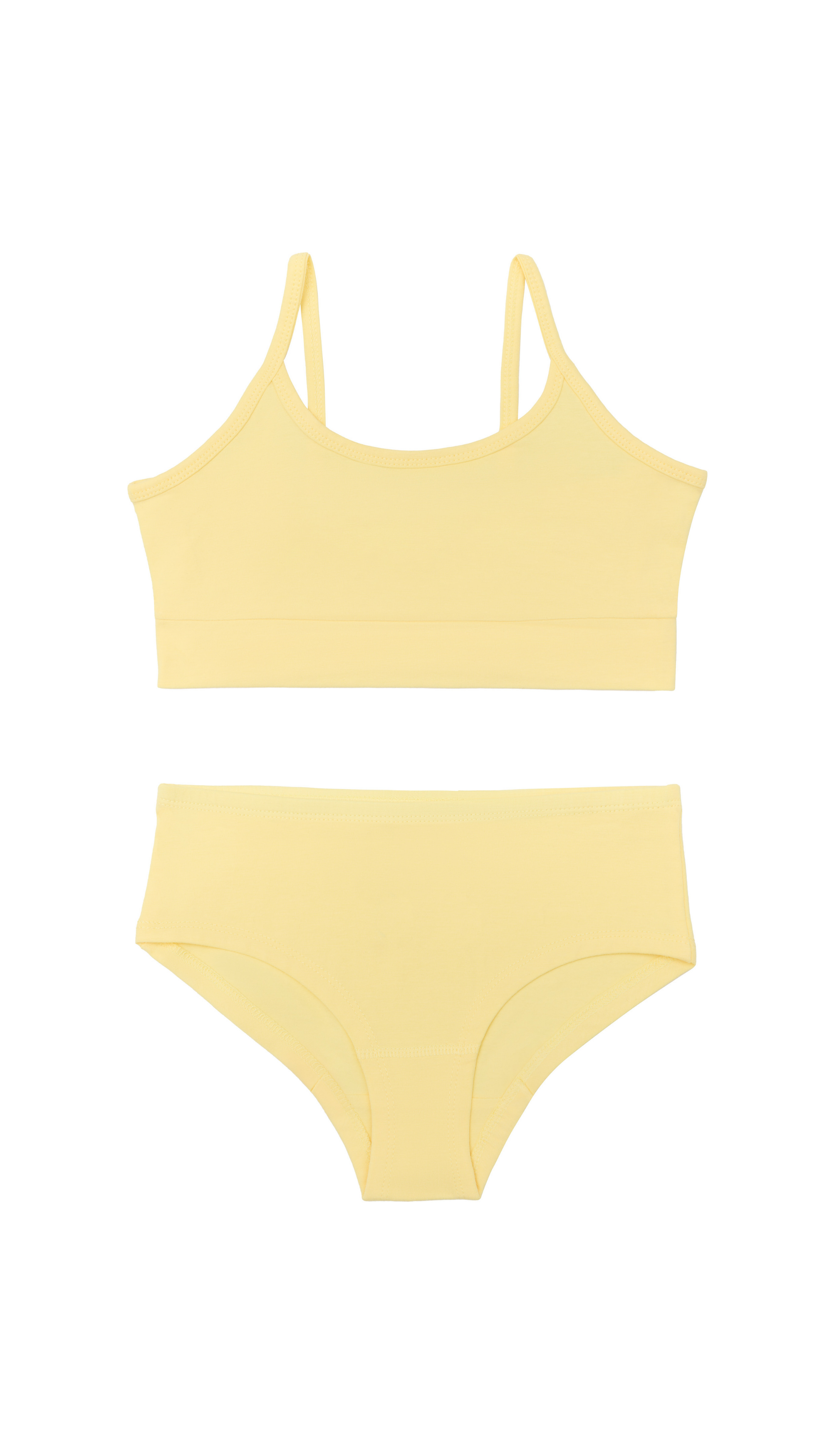 Dieses hübsche Unterwäsche-Set besteht aus einem sportlichen Bustier und einem passenden Hipster – perfekt für aktive Mädchen, die sich den ganzen Tag über wohlfühlen möchten.