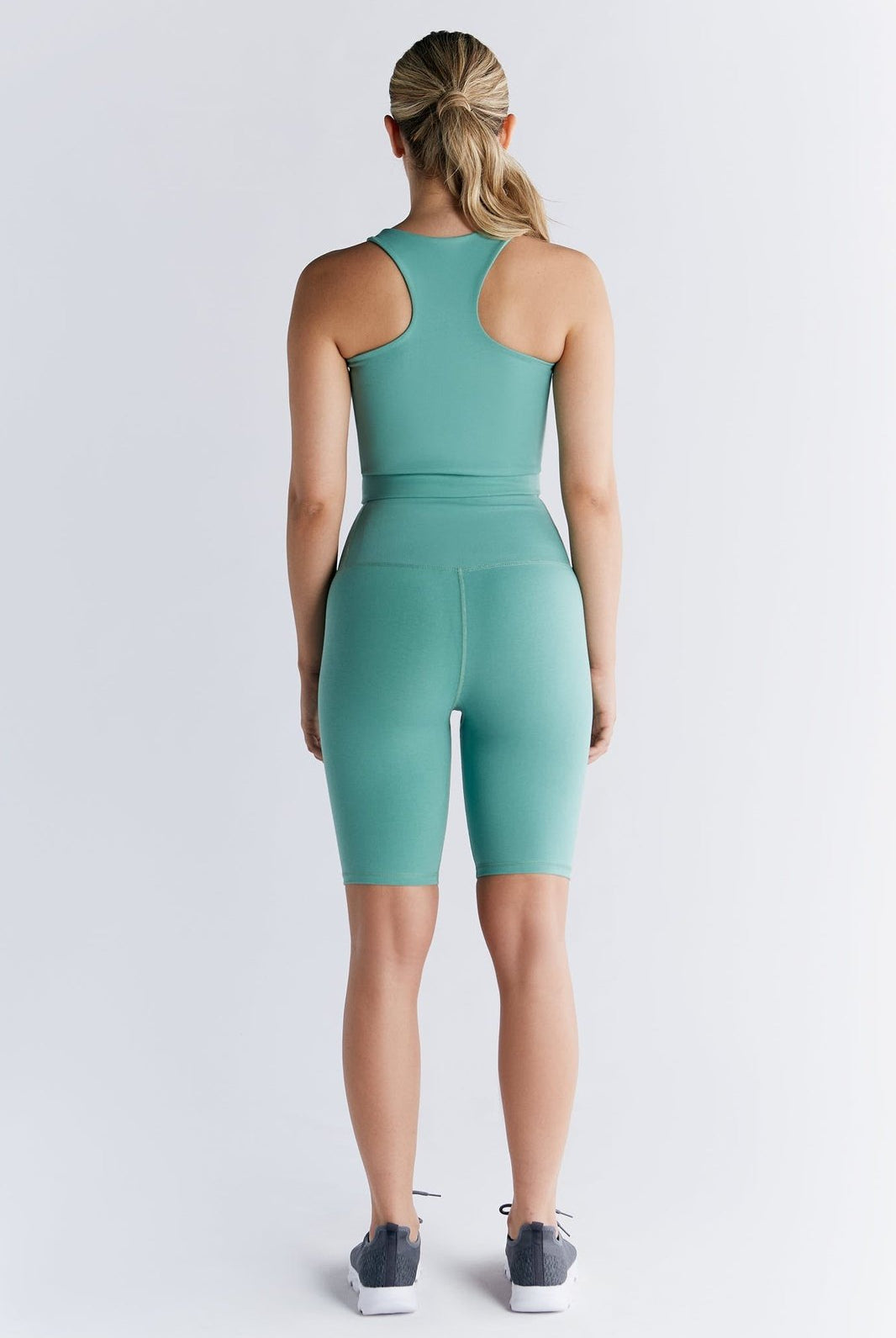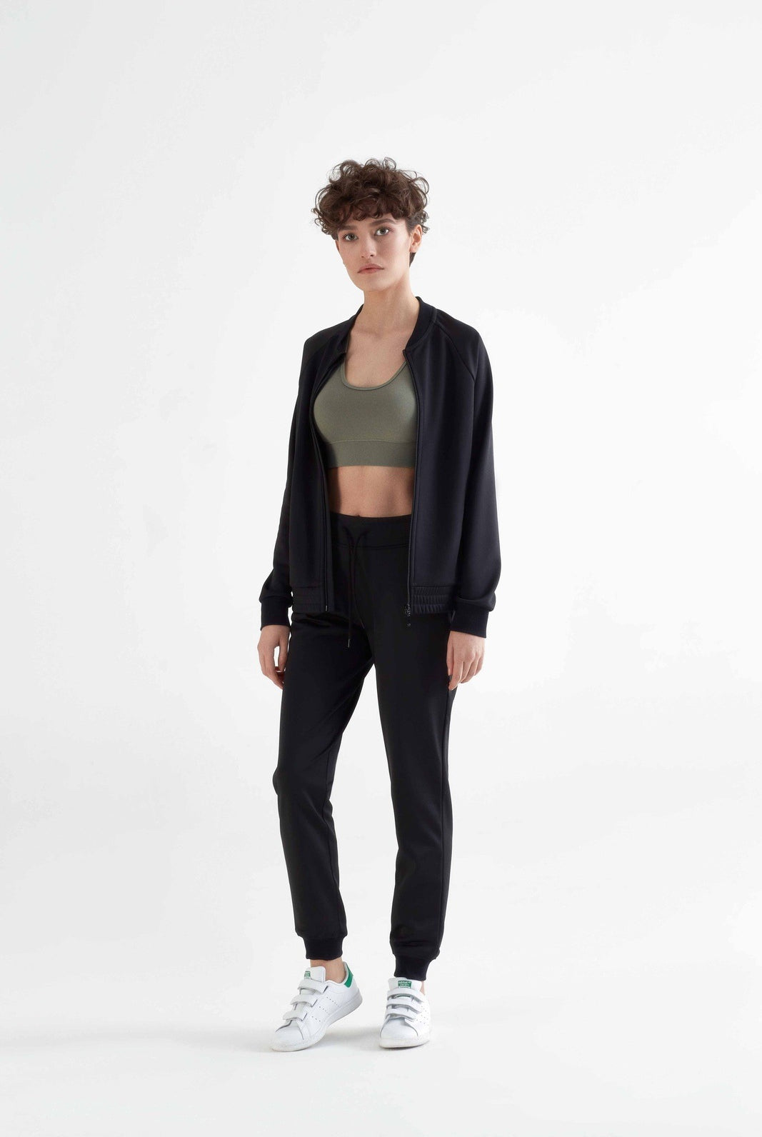 Using recycled elastane helps reduce plastic waste pollution and supports a more sustainable circular economy within the textile industry.