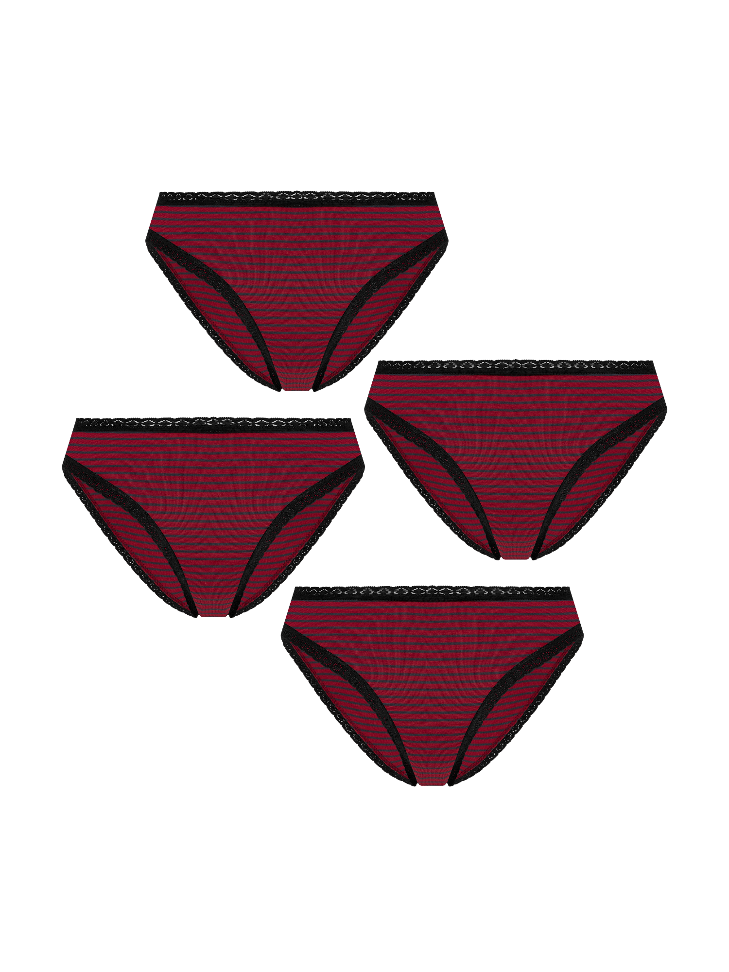 1111-081 | Women Brief with Lace - Tibet Red/Navy Striped