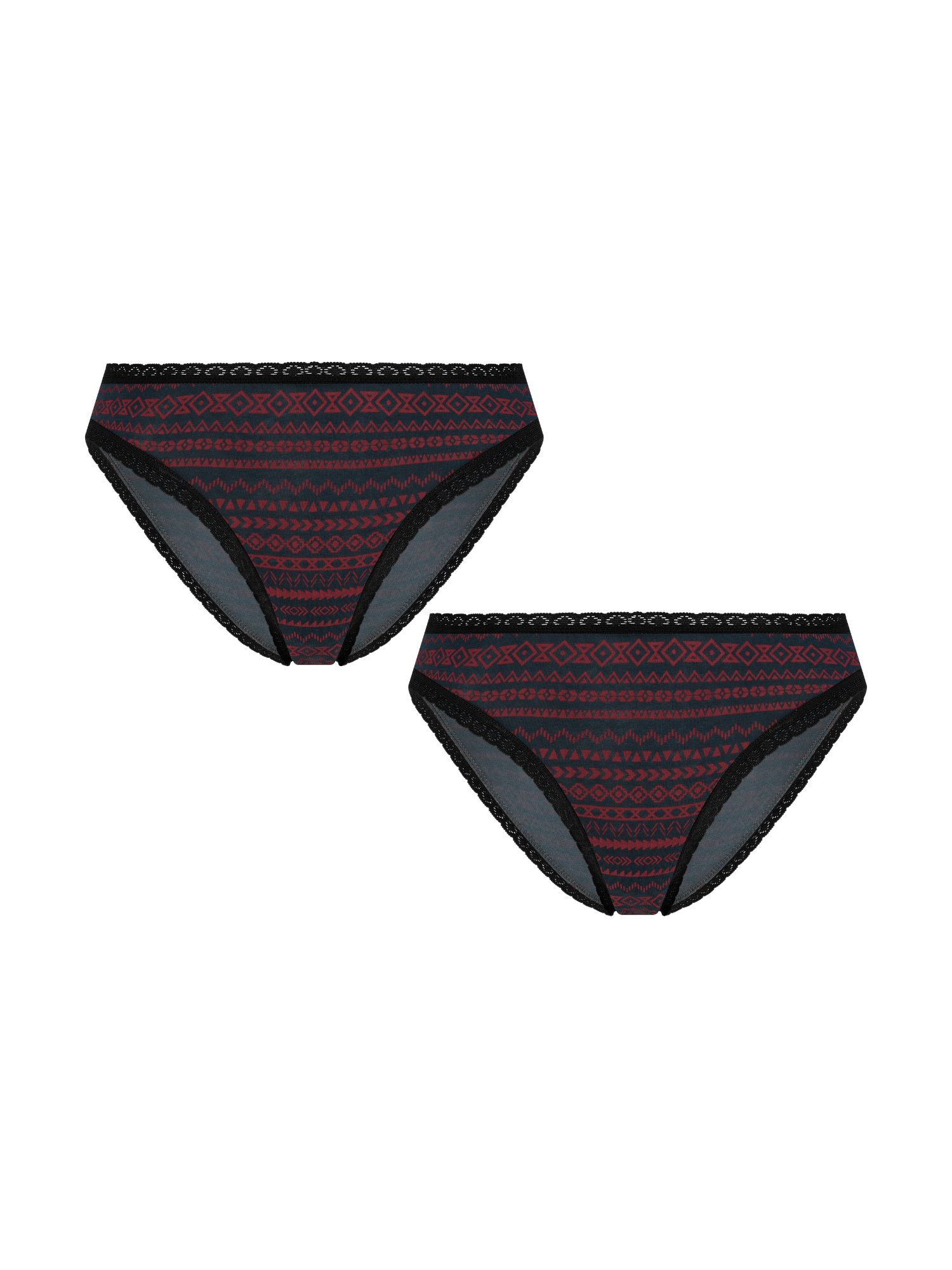 1111-084 | Women Brief with Lace - Tibet Red/Navy Geometrisch