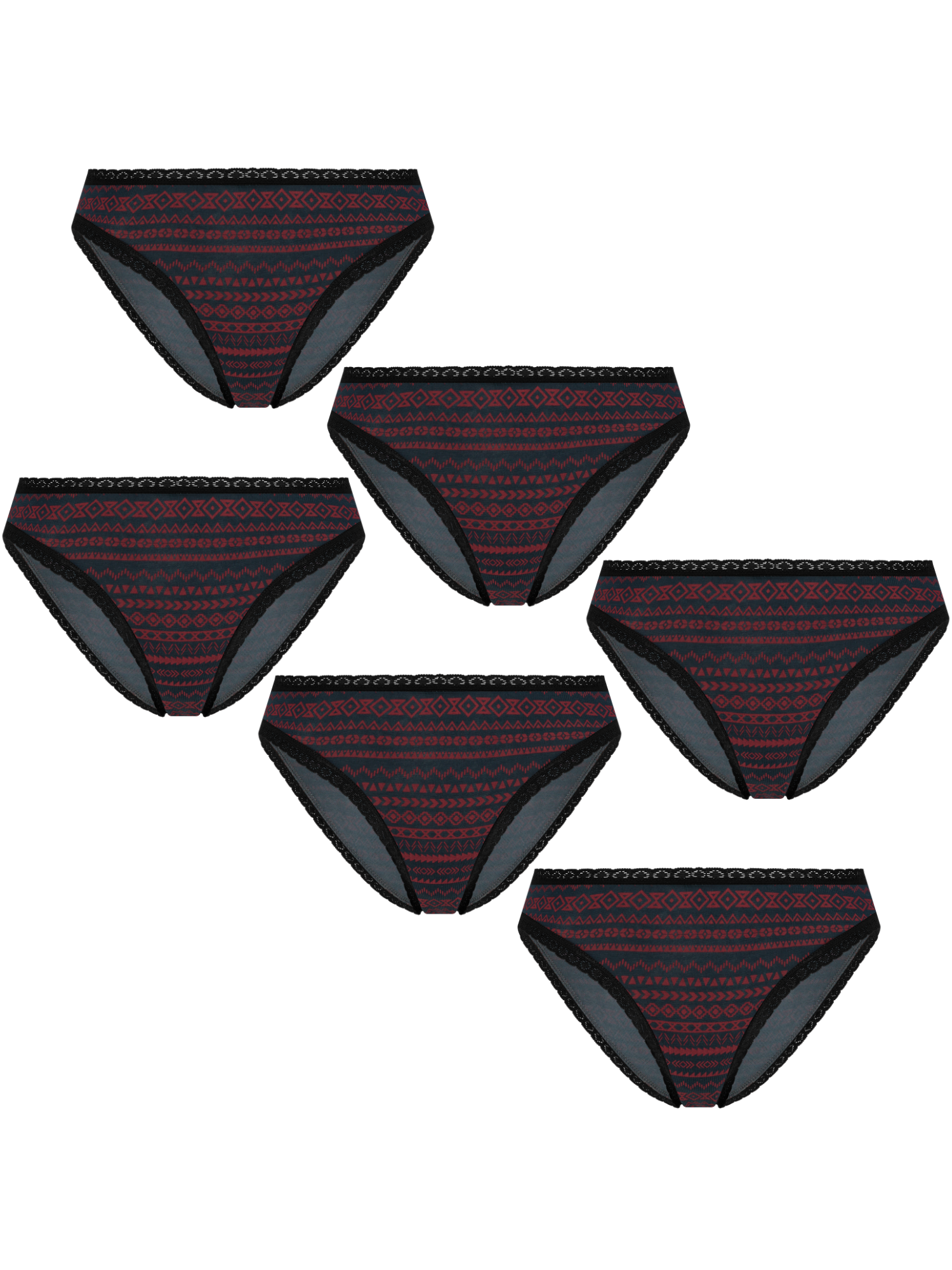1111-084 | Women Brief with Lace - Tibet Red/Navy Geometrisch