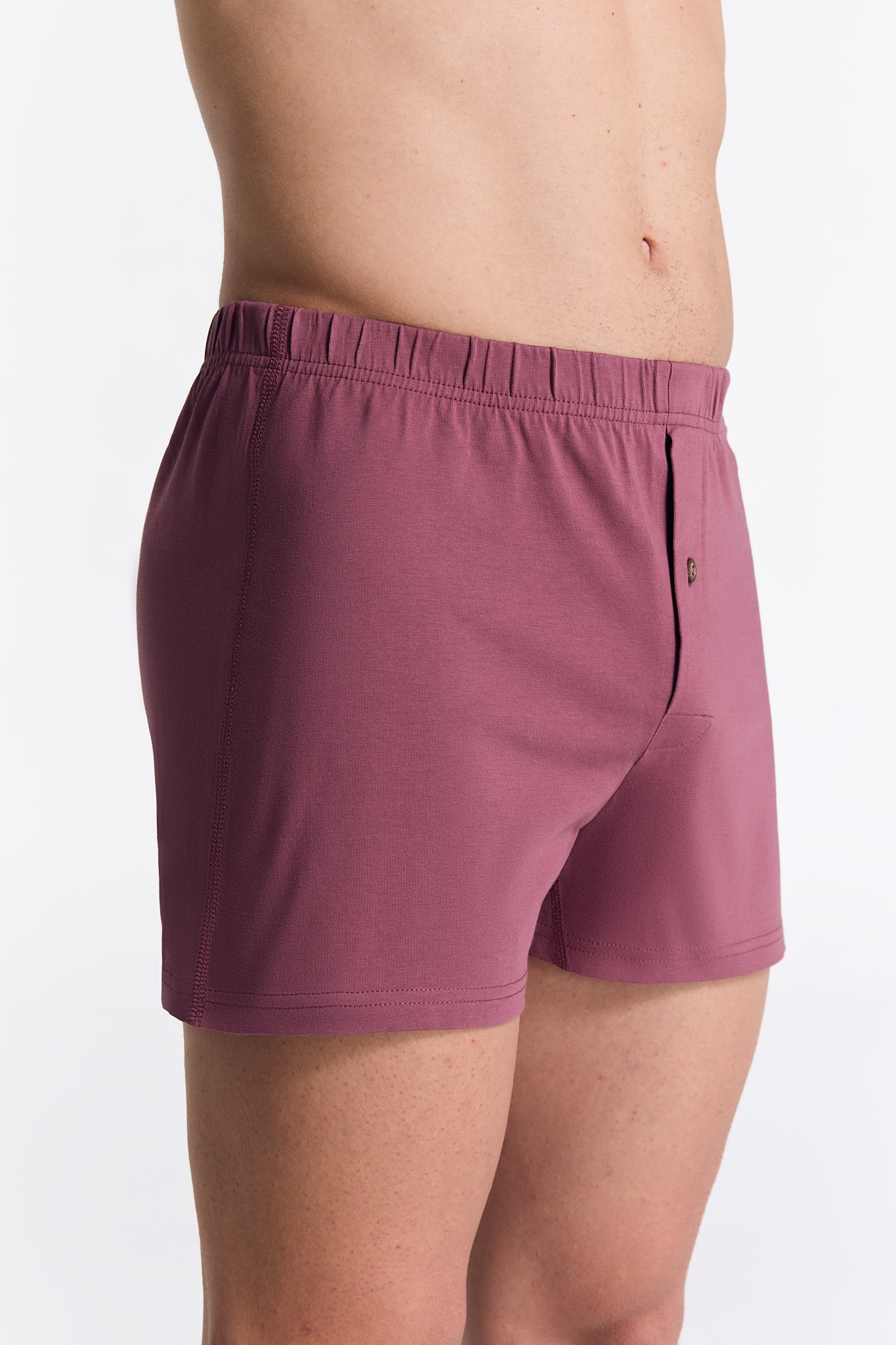 Men's boxer shorts with an elastic waistband in a sporty, trendy design and a practical fly for easy use. Made from 95% organic cotton jersey and 5% elastane. The form-fitting design made from soft organic cotton jersey is high quality, pleasant on the skin, and provides optimal wearing comfort. GOTS certified. Our organic cotton is produced sustainably and environmentally friendly, making these boxer shorts a responsible choice.