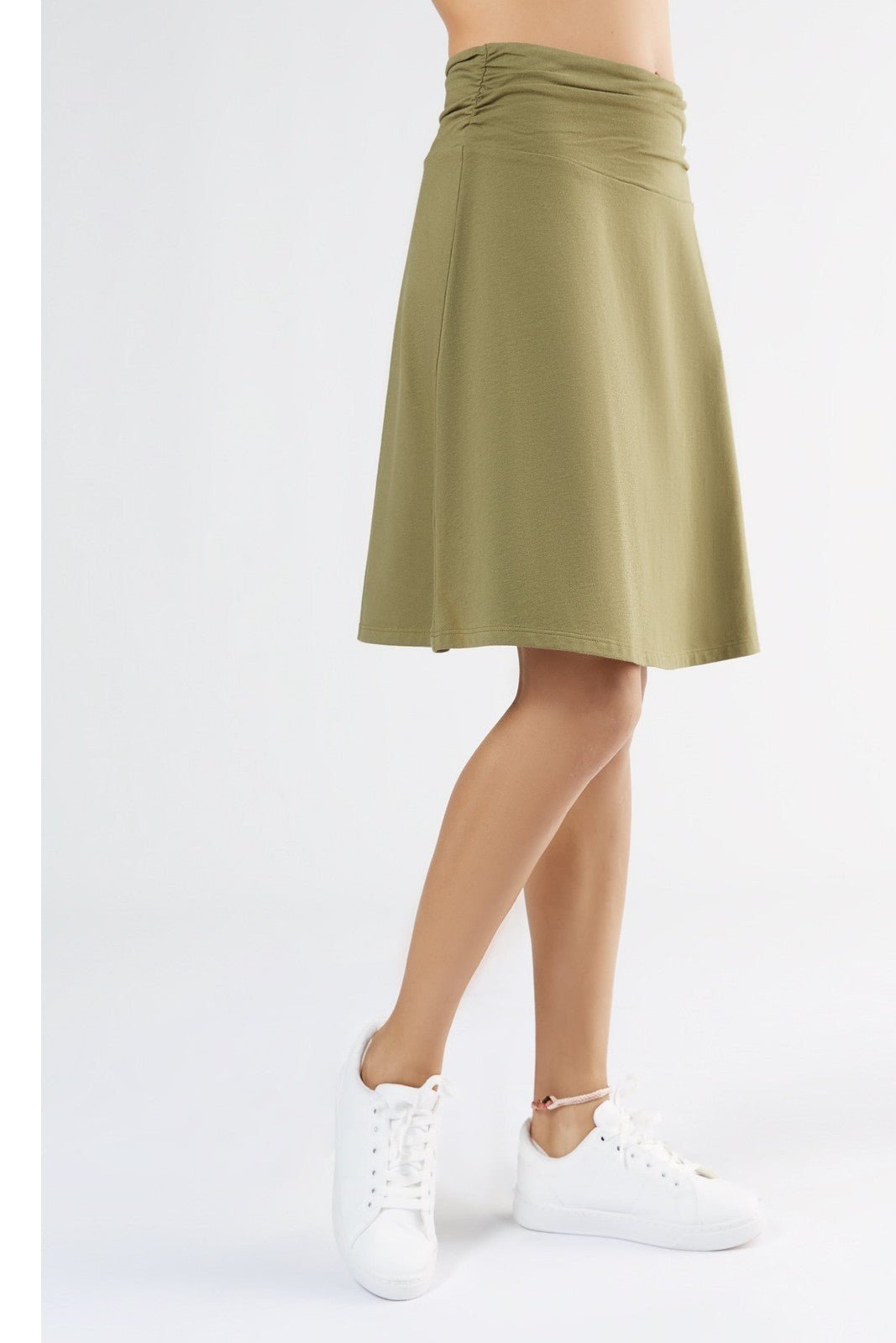 1418-041 | A-Line Skirt with Comfort Waistband - Olive