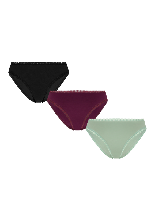 1111-113 - Damen Slip - Schwarz/Aubergine/Eisberggrün (3er Pack)