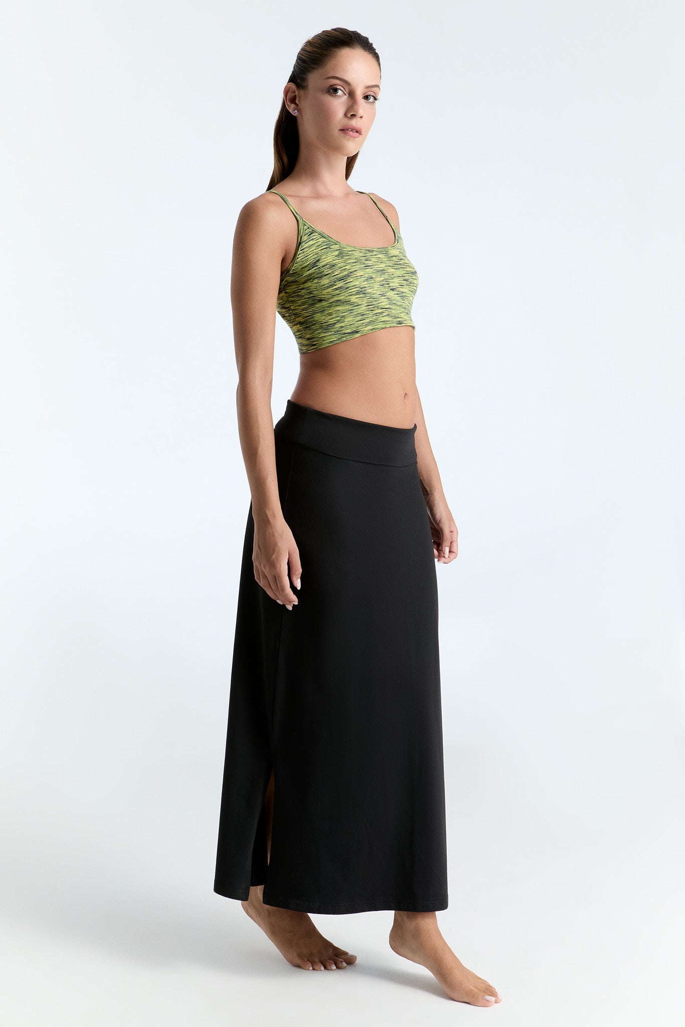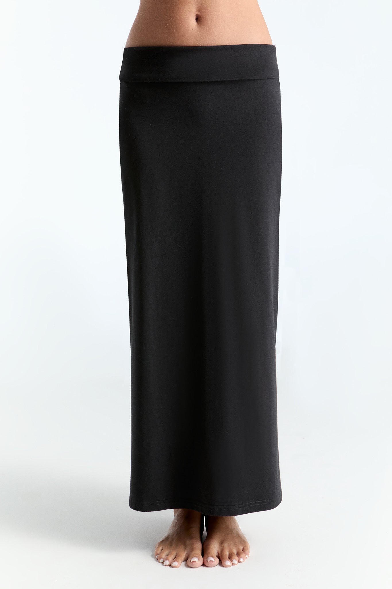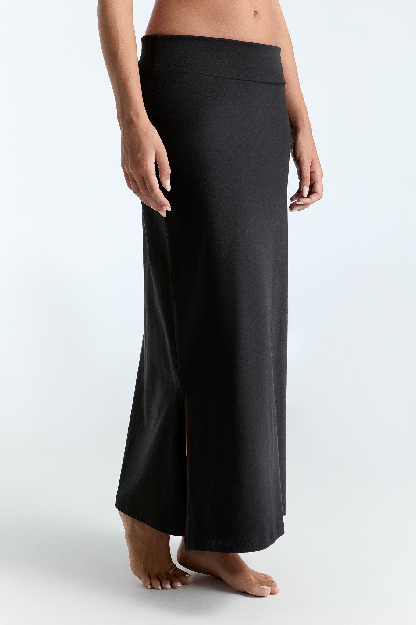 Knöchellanger Rock mit zwei seitlichen Schlitzen. Bequemer Umschlagbund. Hergestellt aus weichem Biobaumwolljersey: 95% Bio-Baumwolle (kbA), 5% Elasthan. GOTS zertifiziert. Unsere Biobaumwolle wird nachhaltig und umweltfreundlich produziert, was diesen Rock zu einer verantwortungsvollen Wahl macht.