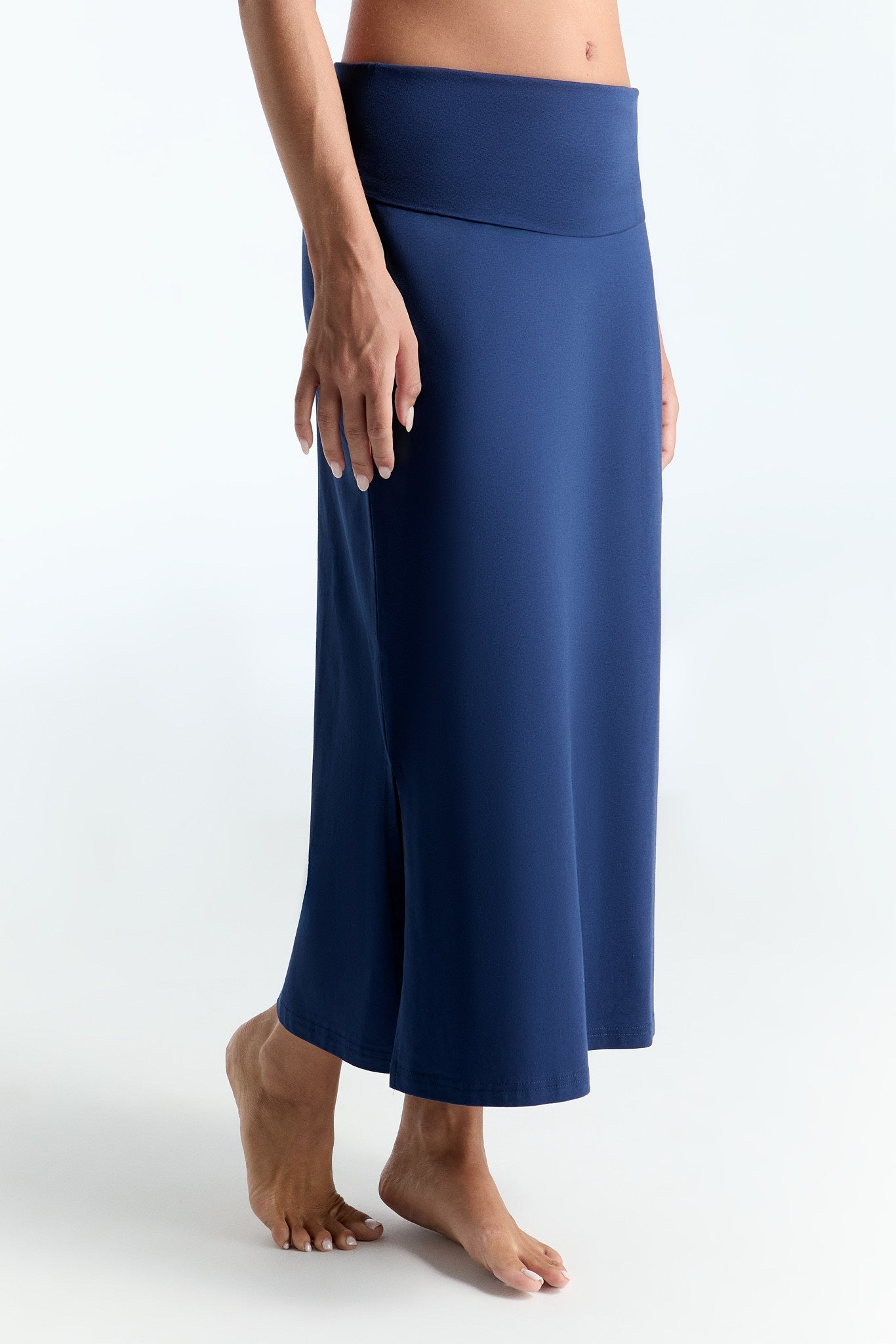 Knöchellanger Rock mit zwei seitlichen Schlitzen. Bequemer Umschlagbund. Hergestellt aus weichem Biobaumwolljersey: 95% Bio-Baumwolle (kbA), 5% Elasthan. GOTS zertifiziert. Unsere Biobaumwolle wird nachhaltig und umweltfreundlich produziert, was diesen Rock zu einer verantwortungsvollen Wahl macht.