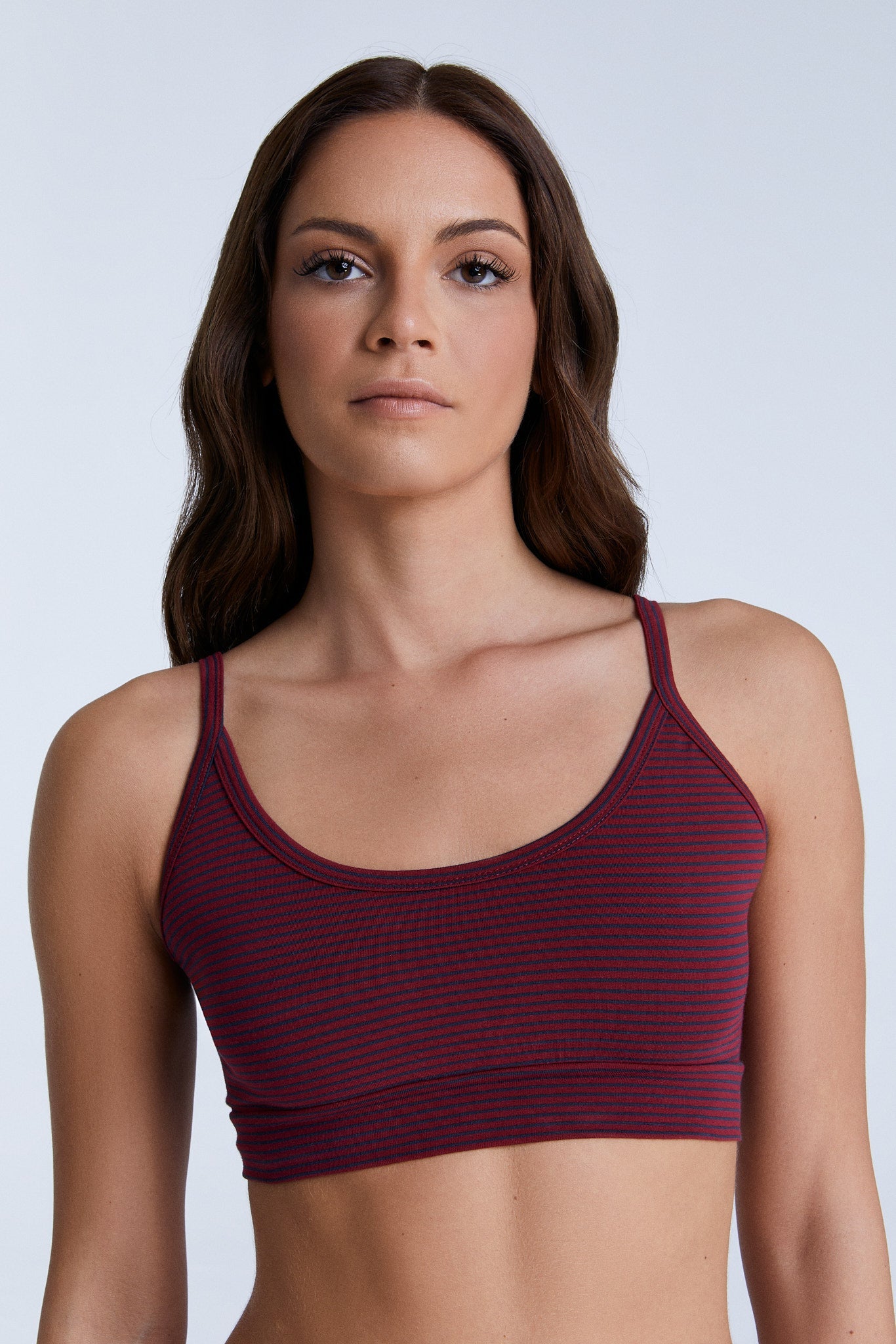 1511-081 | Damen Bustier - Tibetrot/Navy Gestreift