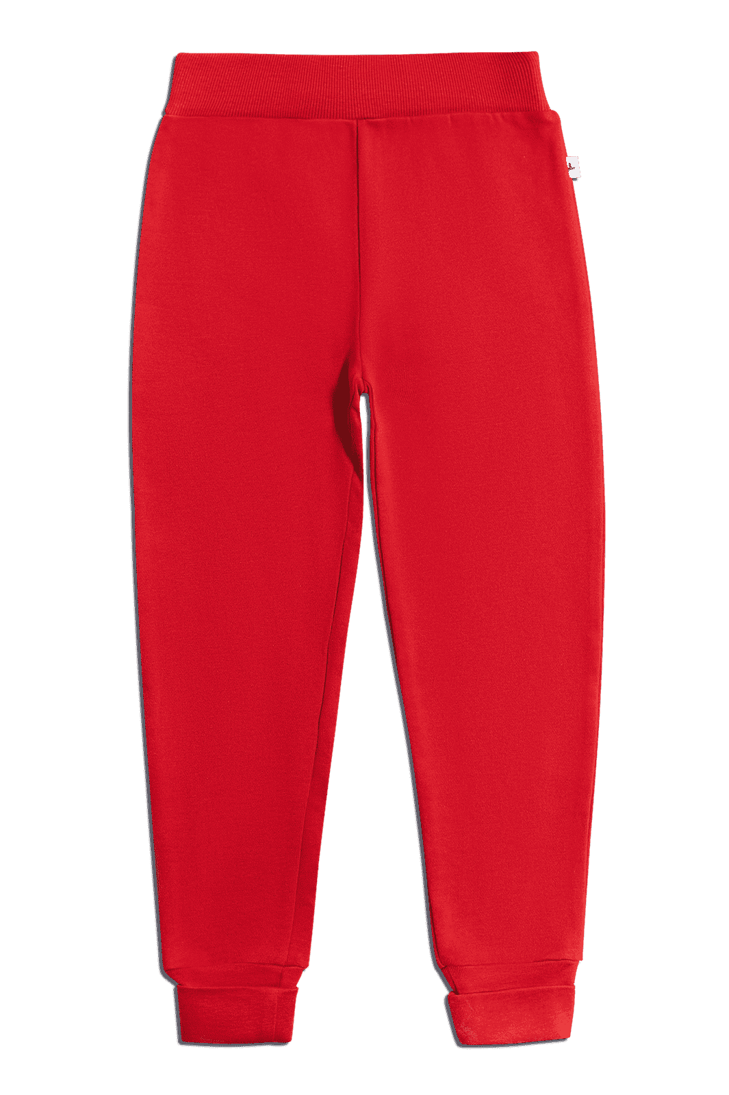 Weiche Sweathose aus beständigem Sweatshirtstoff, 100% Bio-Baumwolle (kbA) in einem aufregenden Ziegelrot. Besonders atmungsaktiv und angenehm zu tragen. Das Rippbündchen, sowie breites Taillengummiband vollenden den bequemen Look.